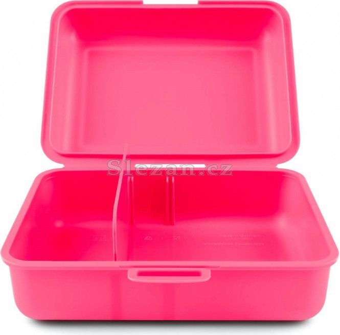 • Plastový box na svačinu v růžové barvě • Box má uzavírání na jeden zámek a dělicí přepážku. • Nedoporučujeme mýt v myčce
