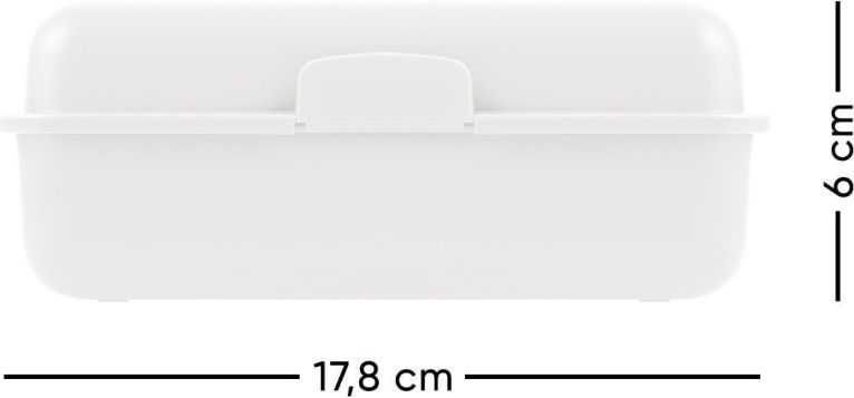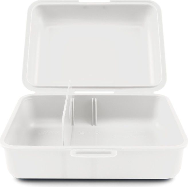 • Plastový box na svačinu v bílé barvě. • Box má uzavírání na jeden zámek a dělicí přepážku. • Nedoporučujeme mýt v myčce