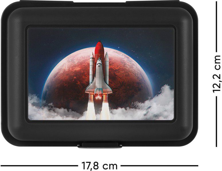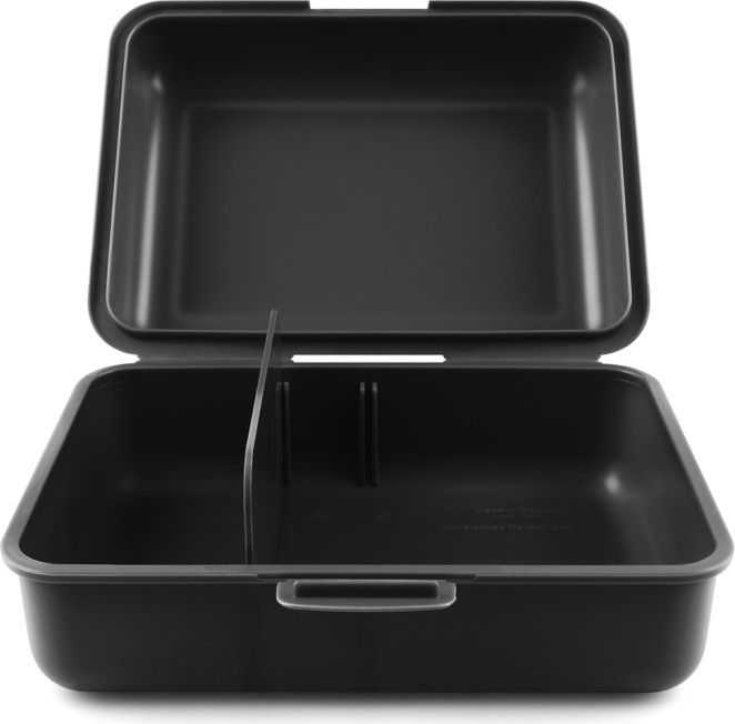 • Plastový box na svačinu v černé barvě. • Box má uzavírání na jeden zámek a dělicí přepážku. • Nedoporučujeme mýt v myčce.