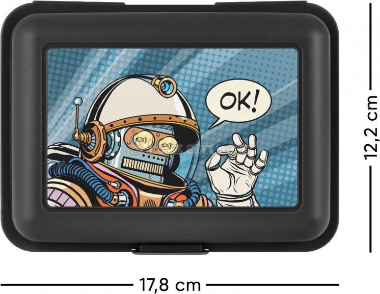 • Plastový box na svačinu s uzavíráním na jeden zámek a dělicí přepážkou.