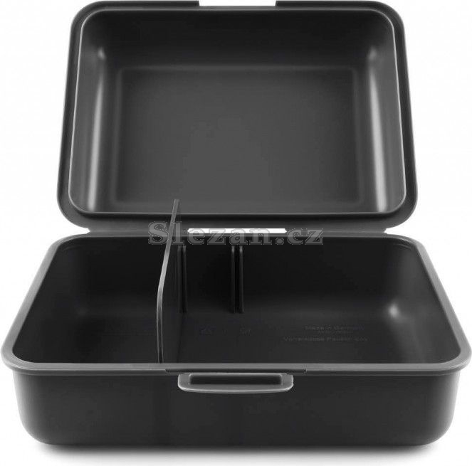 • Plastový box na svačinu. • Box má uzavírání na jeden zámek a obsahuje dělicí přepážku. • Nedoporučujeme mýt v myčce