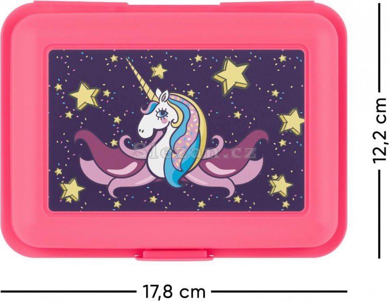 • Plastový box na svačinu s uzavíráním na jeden zámek a dělicí přepážkou.