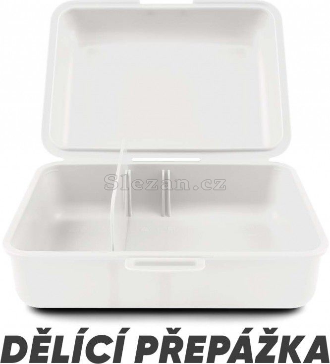 Plastový box na svačinu v bílé barvě.