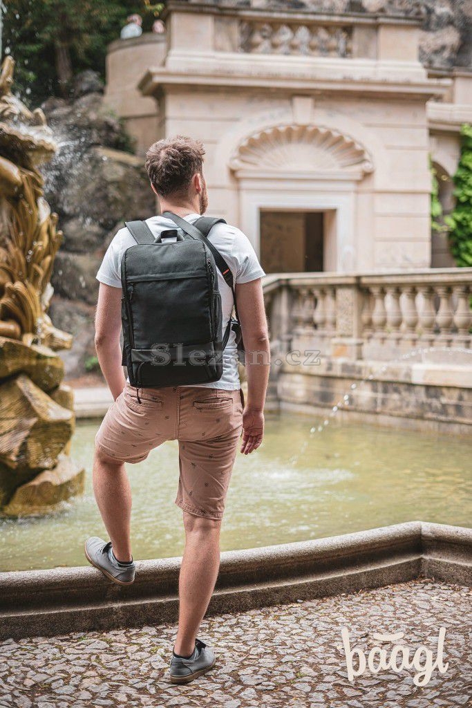 Ideální na cesty jako příruční zavazadlo do letadla. Další výhodou je zádový pruh, který slouží k fixaci batohu na madlech kufru.