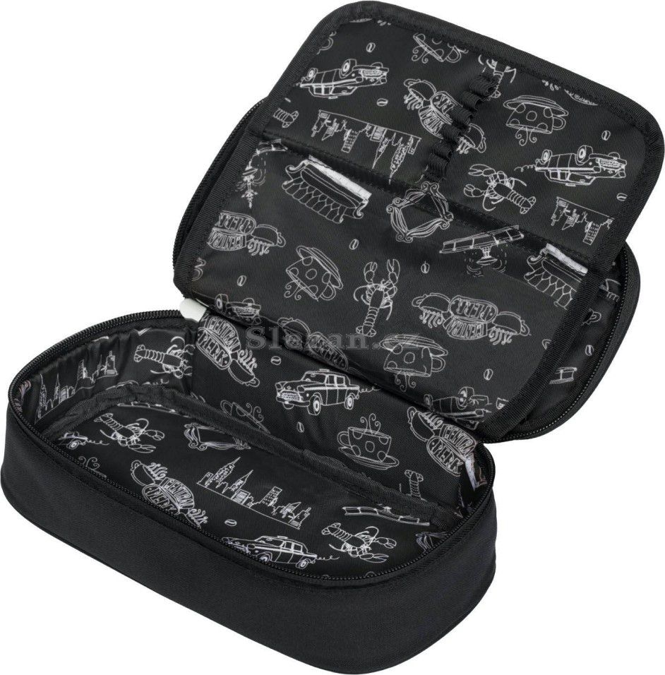 • Pevný školní penál s výklopnou vnitřní přepážkou • Vnitřní kapsa na zip a kapsa na rozvrh. • Bez náplně