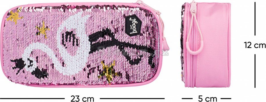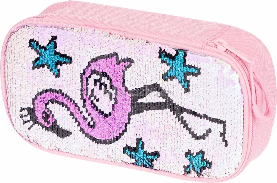 Pevný penál na zip s dvojitou výklopnou chlopní.