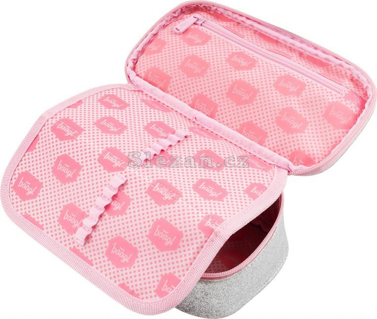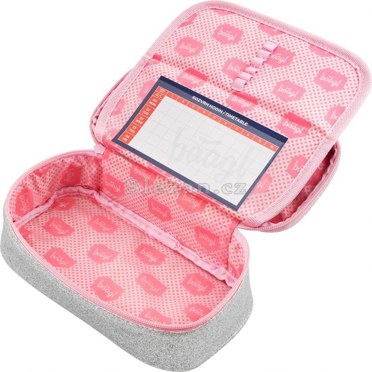 Pevný penál na zip s dvojitou výklopnou chlopní.