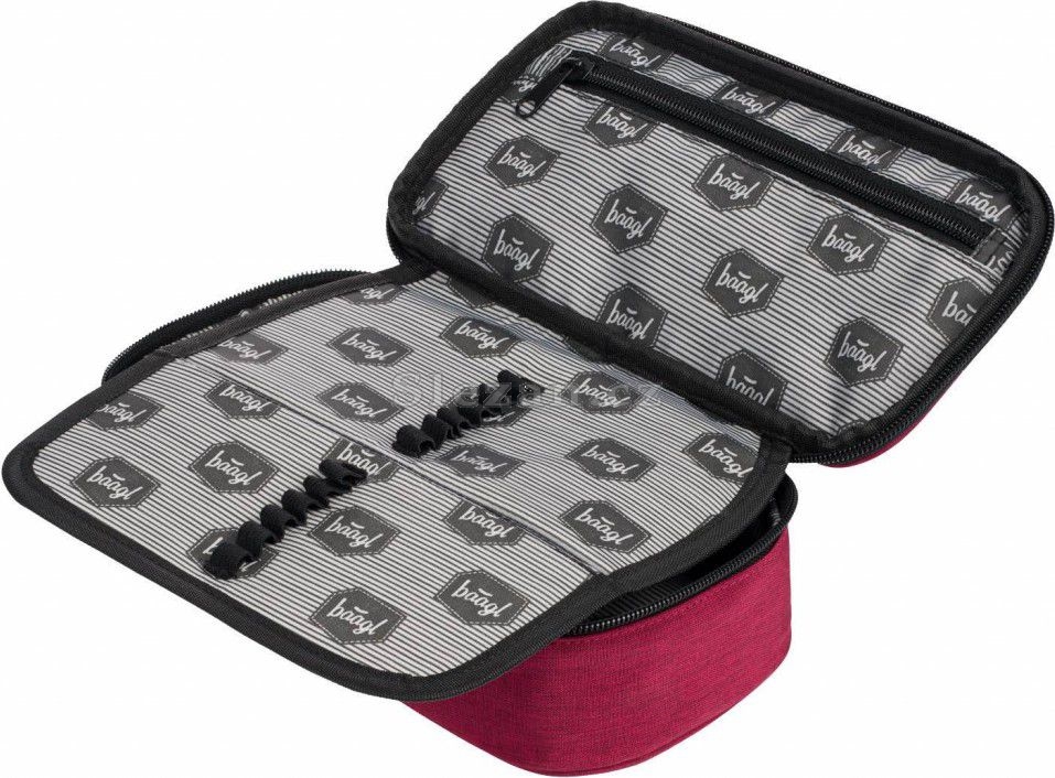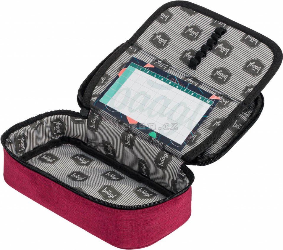 • Pevný penál na zip s dvojitou výklopnou chlopní. • Vnitřní kapsa na zip. • Kapsa se školním rozvrhem. • Logo Baagl je reflexní.