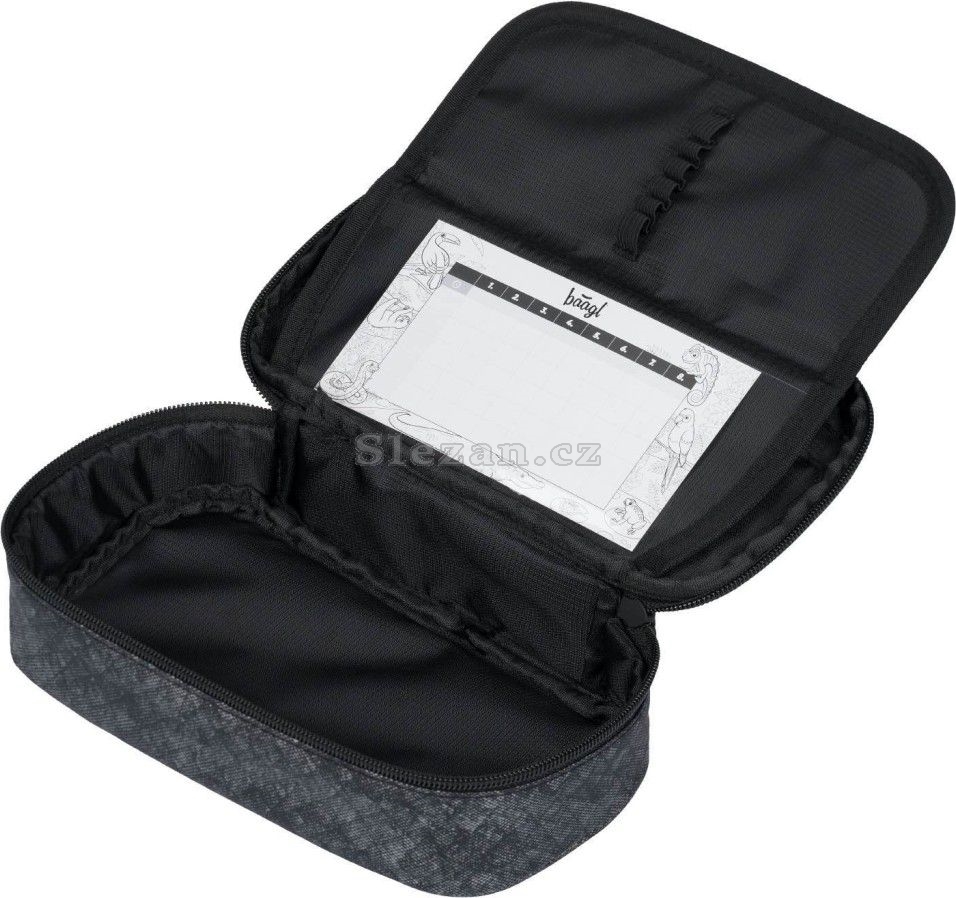 • Pevný školní penál s výklopnou vnitřní přepážkou • Vnitřní kapsa na zip a kapsa na rozvrh. • Bez náplně