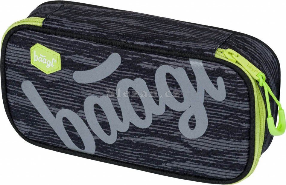 Pevný penál na zip s dvojitou výklopnou chlopní a logem Baagl na přední straně.