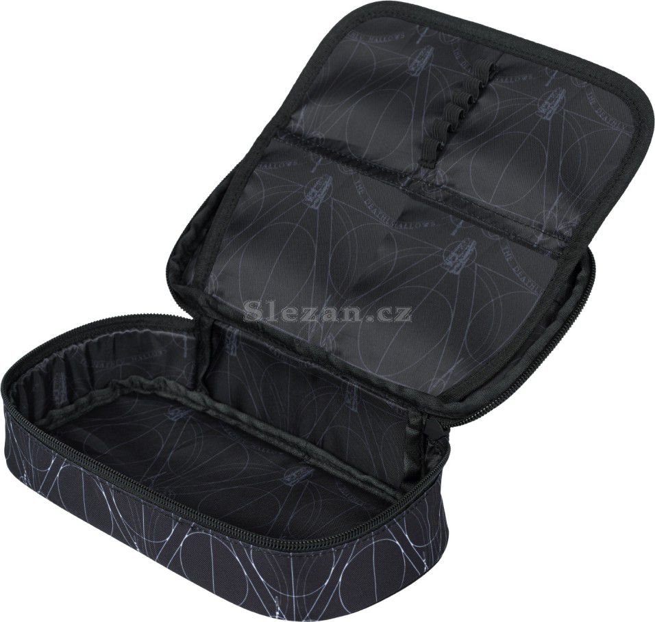 • Pevný školní penál s dvojitou výklopnou vnitřní přepážkou, uzavíratelný na jeden zip • Vnitřní kapsa na zip a kapsa na rozvrh. • Bez náplně