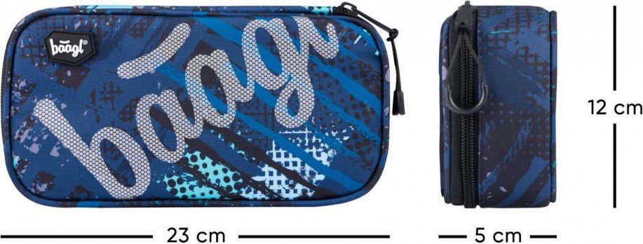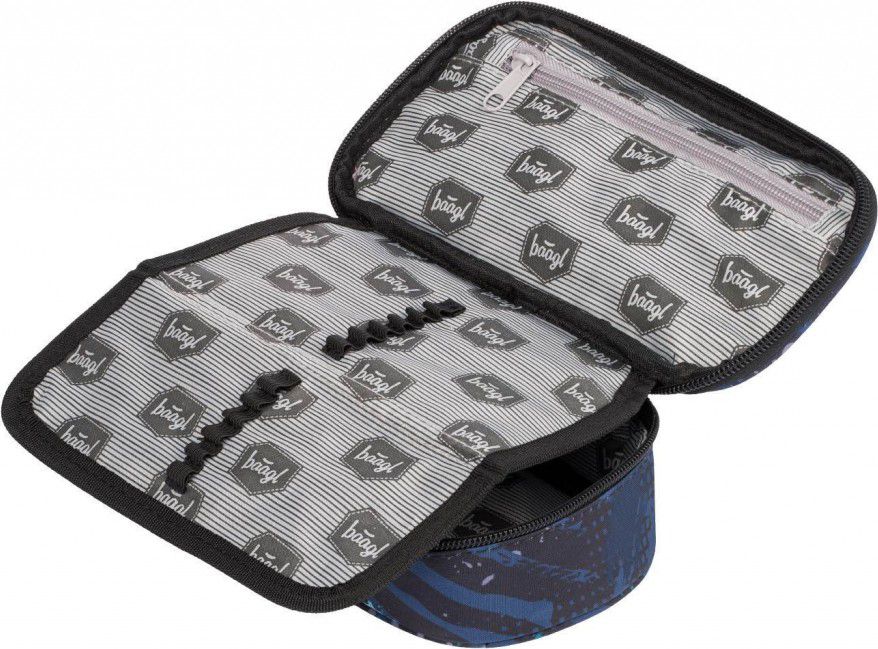 • Pevný penál na zip s dvojitou výklopnou chlopní a logem Baagl na přední straně. • Vnitřní kapsa na zip. • Kapsa se školním rozvrhem. • Logo Baagl je reflexní.