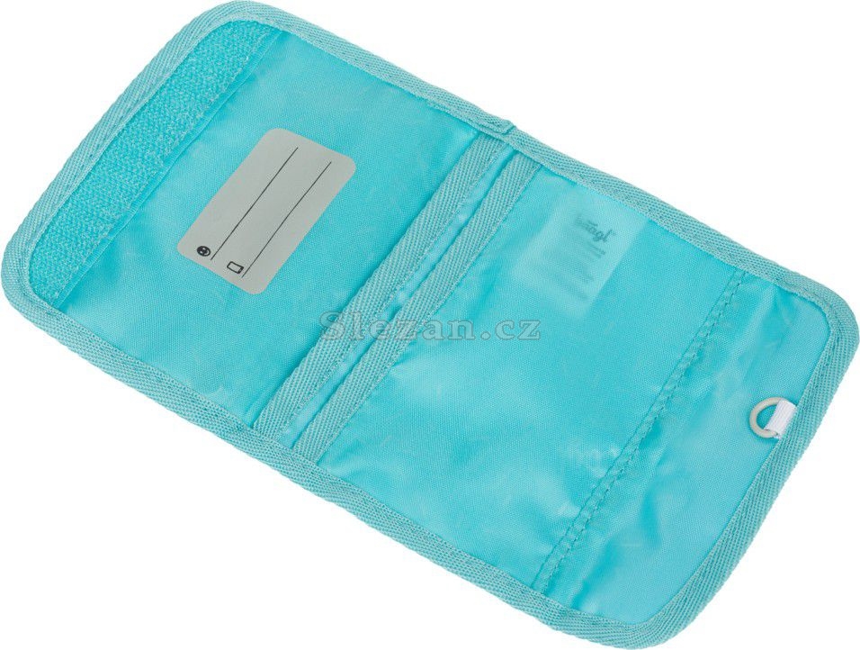 Praktická peněženka se jmenovkou a možností zavěšení na krk.