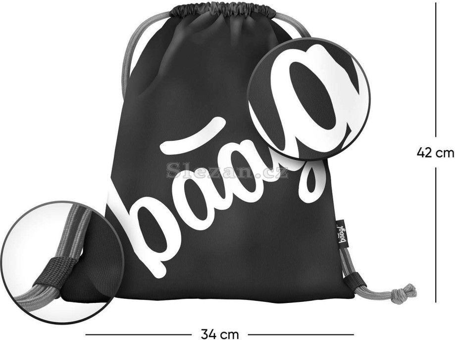 • Sáček na cvičky nebo přezůvky. • Zdrhování pomocí pevných tkanic, které zároveň umožňují nošení na zádech.