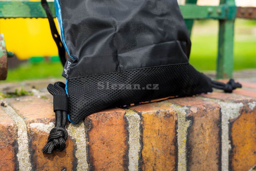 • Sáček na cvičky nebo přezůvky. • Zdrhování pomocí pevných tkanic, které zároveň umožňují nošení na zádech.