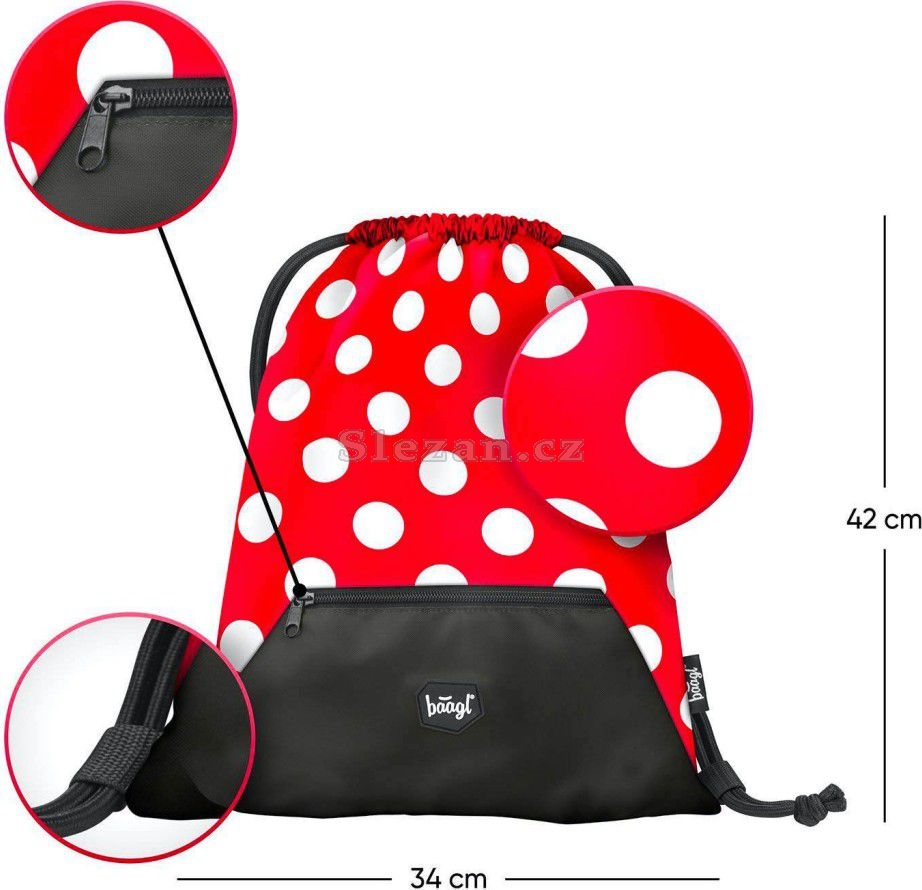 • Sáček na cvičky nebo přezůvky. • Sáček je vyroben z pevného omyvatelného materiálu a v jeho dolní části je umístěna praktická kapsa na zip. • Zdrhování pomocí pevných tkanic, které zároveň umožňují nošení na zádech.
