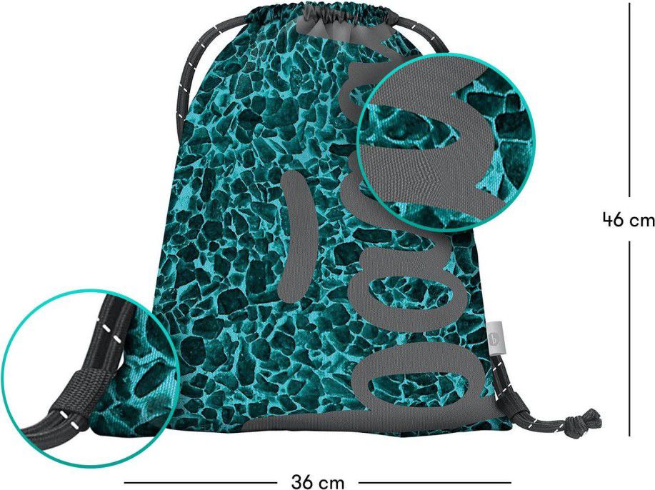 • Sáček na cvičky nebo přezůvky s logem BAAGL, které ve tmě svítí. • Sáček je vyroben z pevného omyvatelného materiálu. • Zdrhování pomocí pevných tkanic, které zároveň umožňují nošení na zádech.