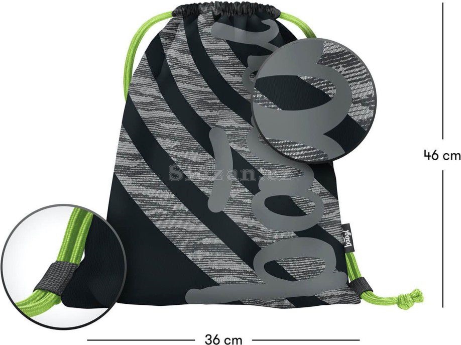 • Sáček na cvičky nebo přezůvky s logem BAAGL, které ve tmě svítí. • Sáček je vyroben z pevného omyvatelného materiálu. • Zdrhování pomocí pevných tkanic, které zároveň umožňují nošení na zádech.