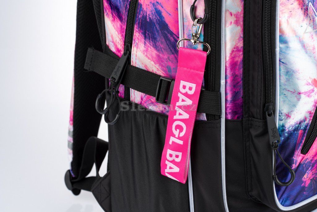 - Batoh je vybaven růžovým přívěskem s logem BAAGL.