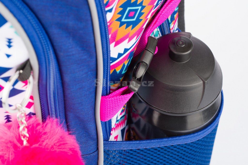 Boční kapsy z pevné síťoviny na láhev na pití či jiné drobnosti.