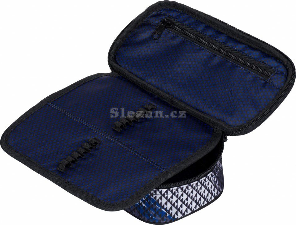 Pevný školní penál s výklopnou vnitřní přepážkou.