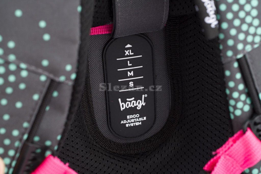 Posuvný zádový systém ERGO ADJUSTABLE SYSTEM umožňuje nastavení optimální polohy popruhů vzhledem k výšce dítěte.