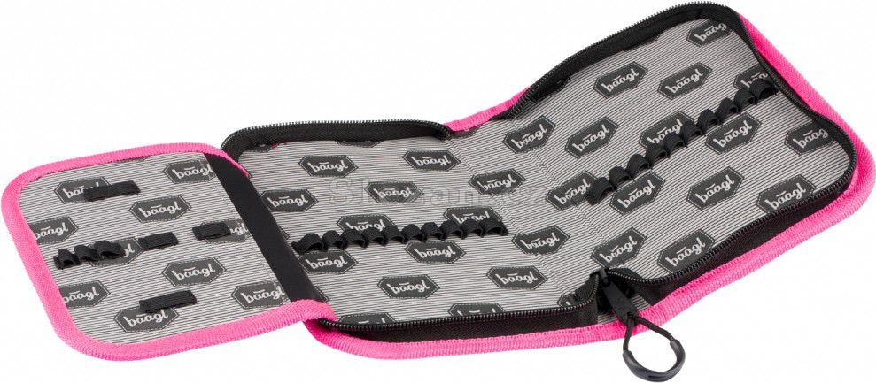 Uvnitř aktovky je průhledná kapsa s rozvrhem a vnitřní organizér umožňující rovnoměrné rozložení hmotnosti.