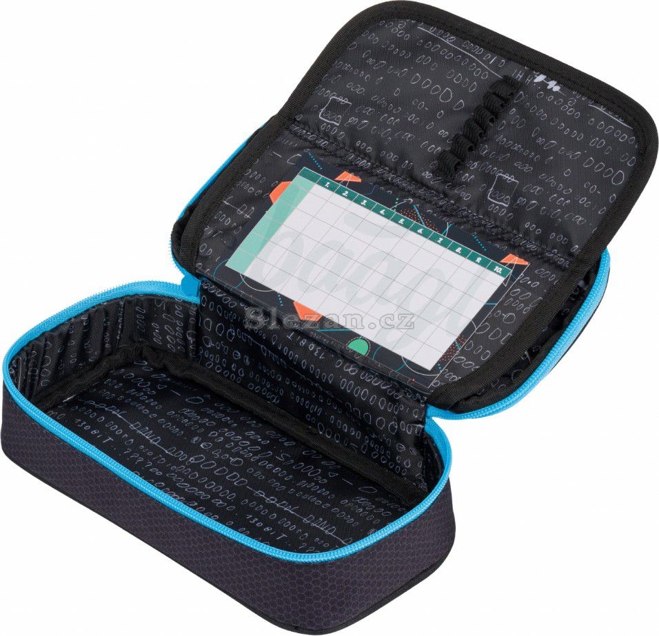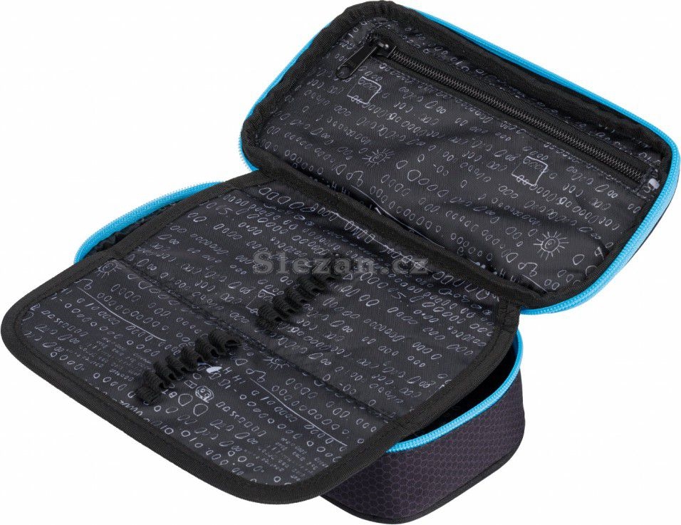 - Pevný školní penál s výklopnou vnitřní přepážkou.