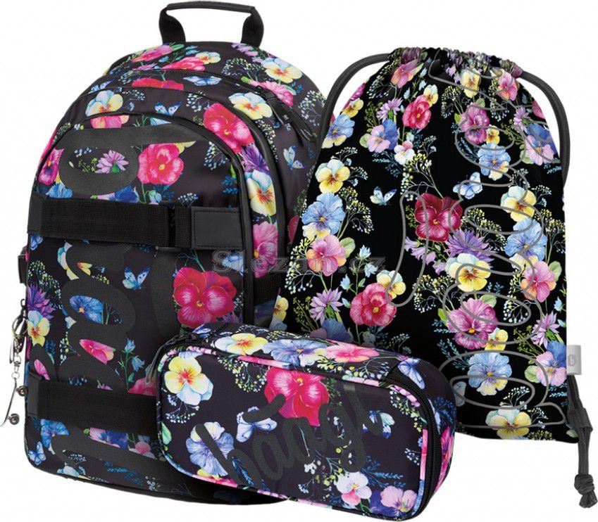 BAAGL SET 3 Skate Flowers: batoh, penál a sáček