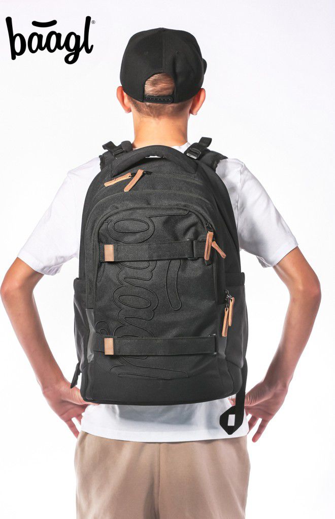 - Postranní kapsy, ideální například na tritanové láhve BAAGL, jsou vyrobeny z pevného materiálu sladěného s designem batohu.