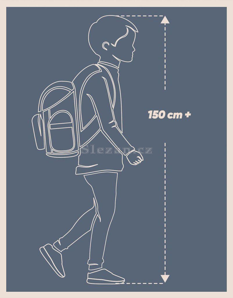 Kompaktní batoh Skate Max je ideální pro žáky a studenty od 155 do 185 cm, což odpovídá přibližně 3. třídě ZŠ a výše.
