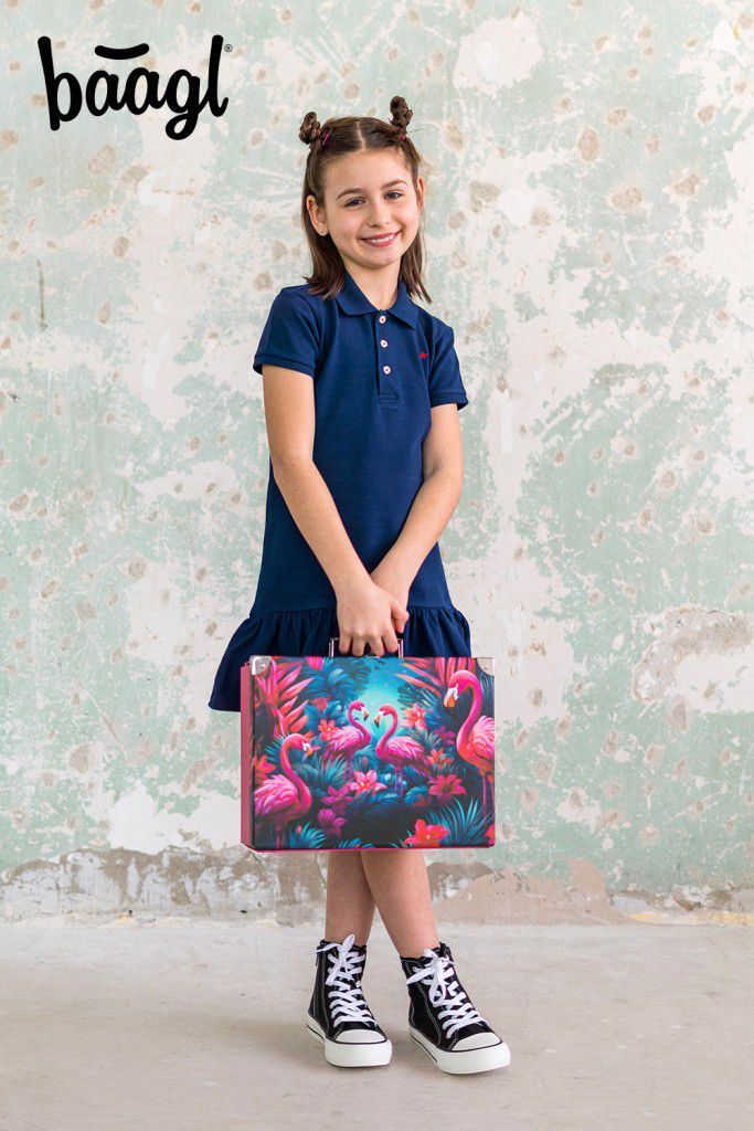 Popis BAAGL Skládací školní kufřík Plameňáci s kováním