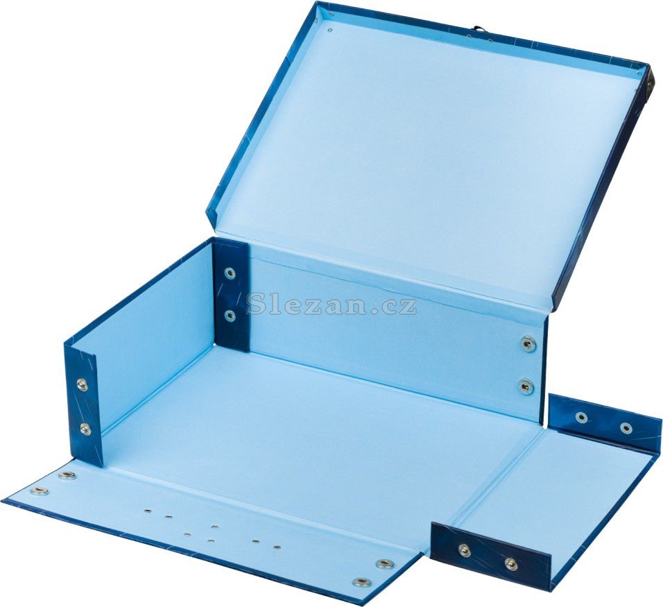 Díky důmyslnému systému patentek lze kufřík s okovanými rohy snadno složit i rozložit během několika vteřin.