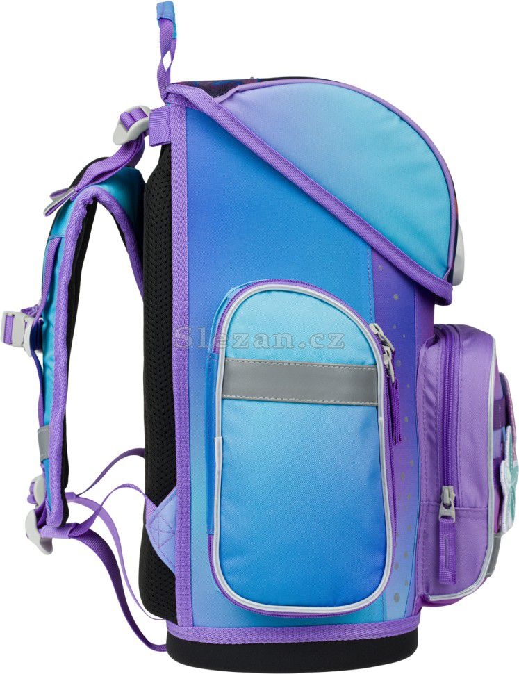 Ergonomická školní aktovka s anatomicky tvarovanými zády a pevným dnem, vhodná pro děti od 1. třídy ZŠ.