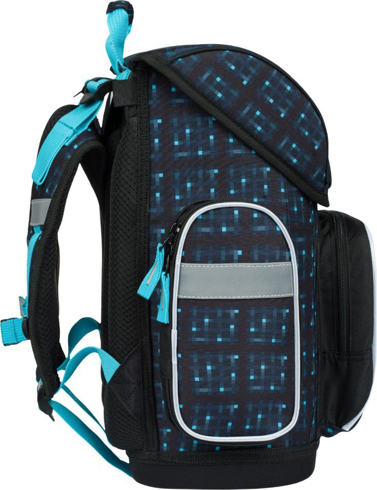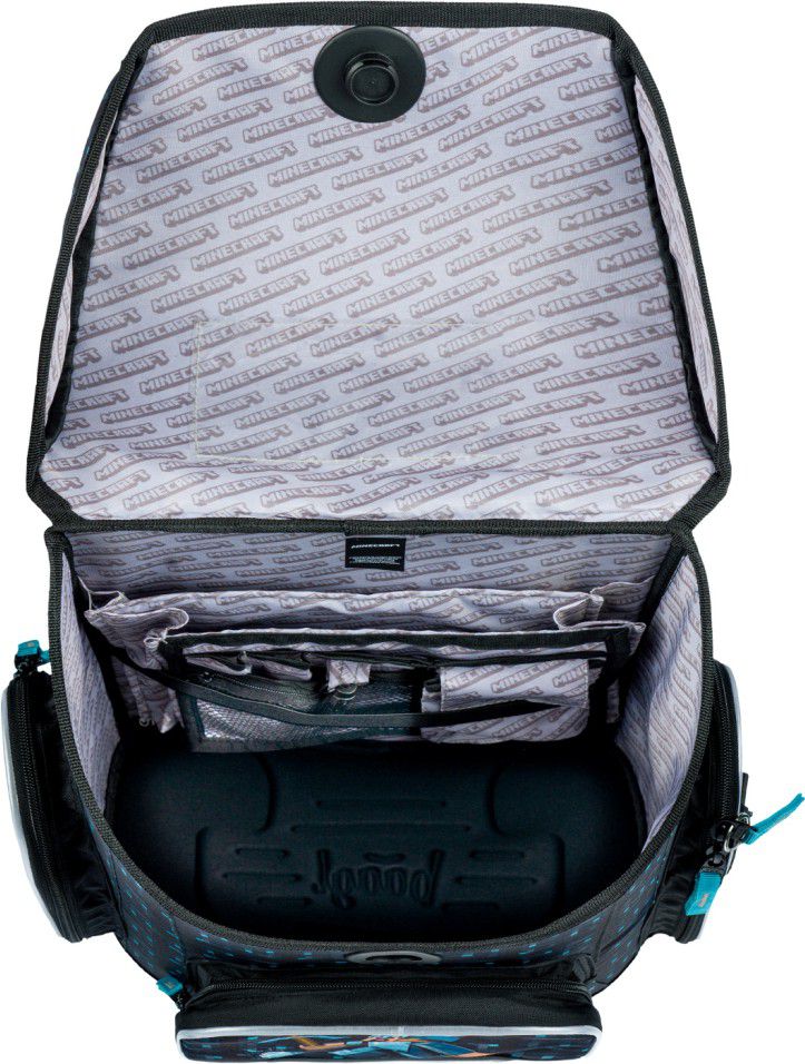 Uvnitř aktovky je průhledná kapsa s rozvrhem a vnitřní organizér umožňující rovnoměrné rozložení hmotnosti.