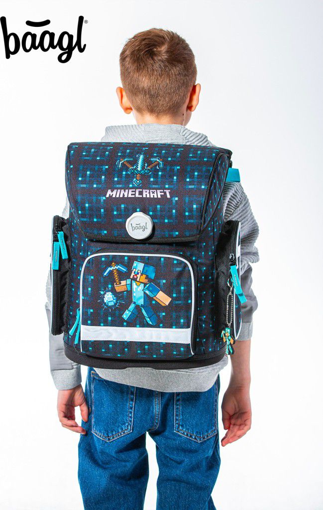Popis BAAGL Školní aktovka Ergo Minecraft Blue Axe