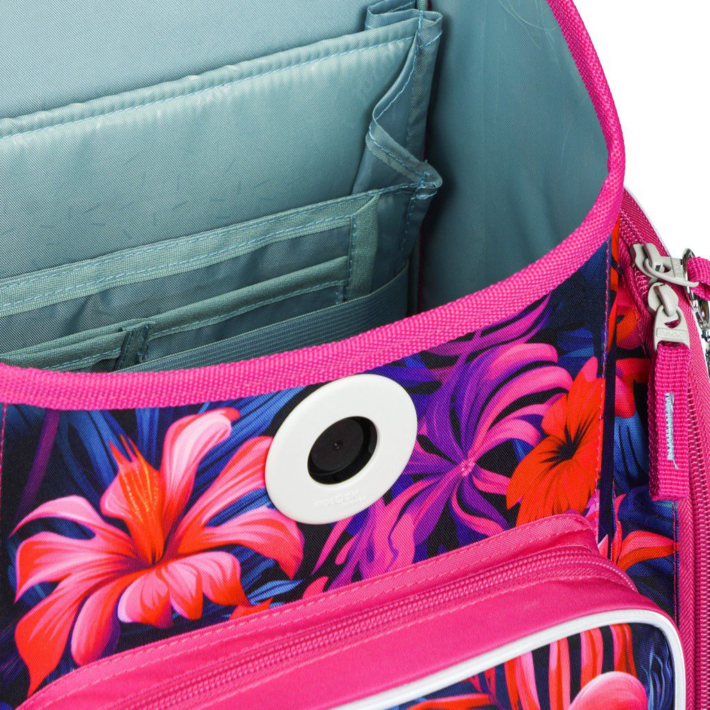 Uvnitř aktovky je průhledná kapsa s rozvrhem a vnitřní organizér umožňující rovnoměrné rozložení hmotnosti.