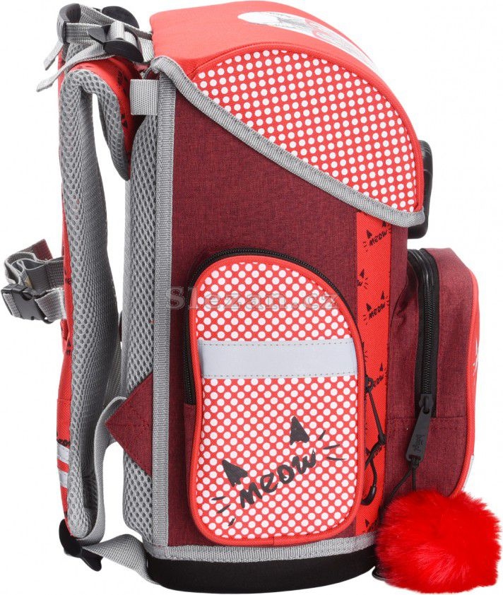 Školní aktovka s vyztuženým tělem, vnitřním organizérem a třemi oddělenými kapsami a zapínáním na kvalitní přezku.