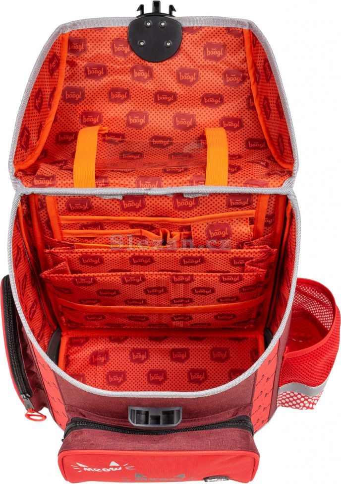 Uvnitř aktovky je průhledná kapsa s rozvrhem a vnitřní organizér umožňující rovnoměrné rozložení hmotnosti.