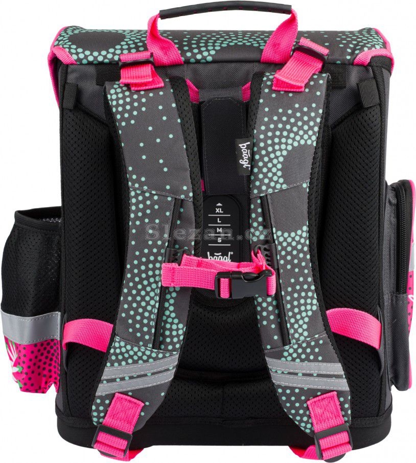 Školní aktovka s vyztuženým tělem, vnitřním organizérem, třemi oddělenými kapsami a zapínáním na kvalitní přezku.