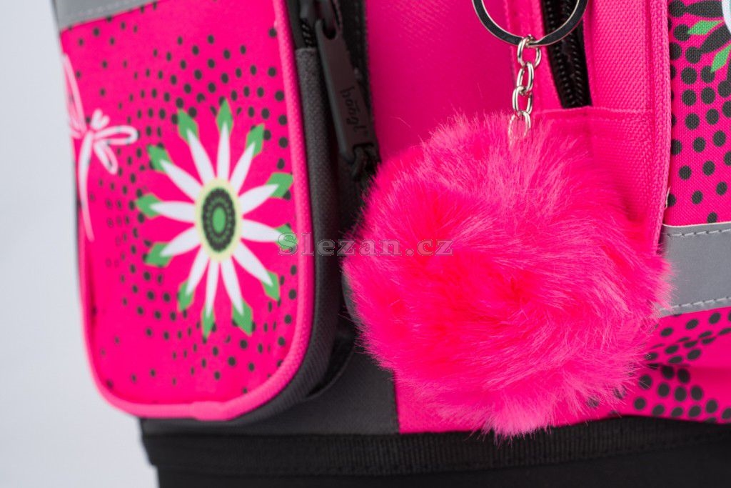 Aktovka je vybavena trendy chlupatým přívěskem.