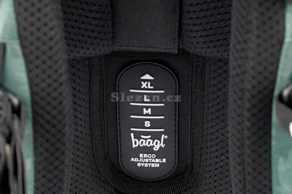 Posuvný zádový systém ERGO ADJUSTABLE SYSTEM umožňuje nastavení optimální polohy popruhů vzhledem k výšce dítěte.
