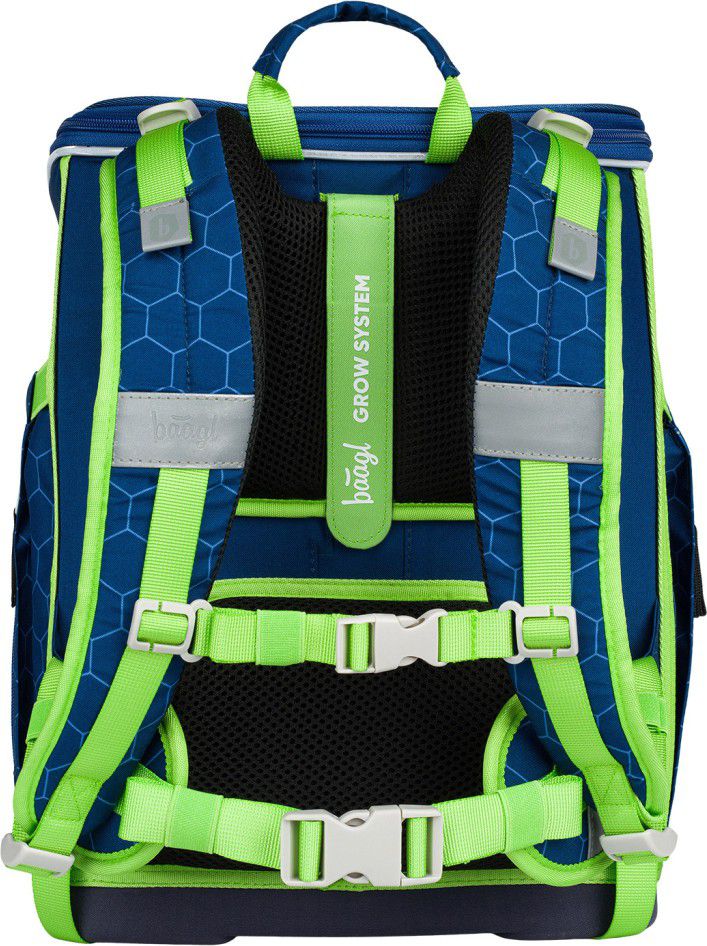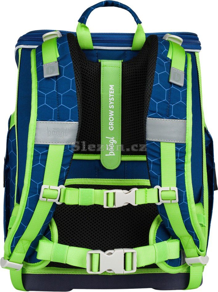Posuvný zádový systém umožňuje nastavení aktovky na tři různé velikosti, díky čemuž taška roste spolu s dítětem.