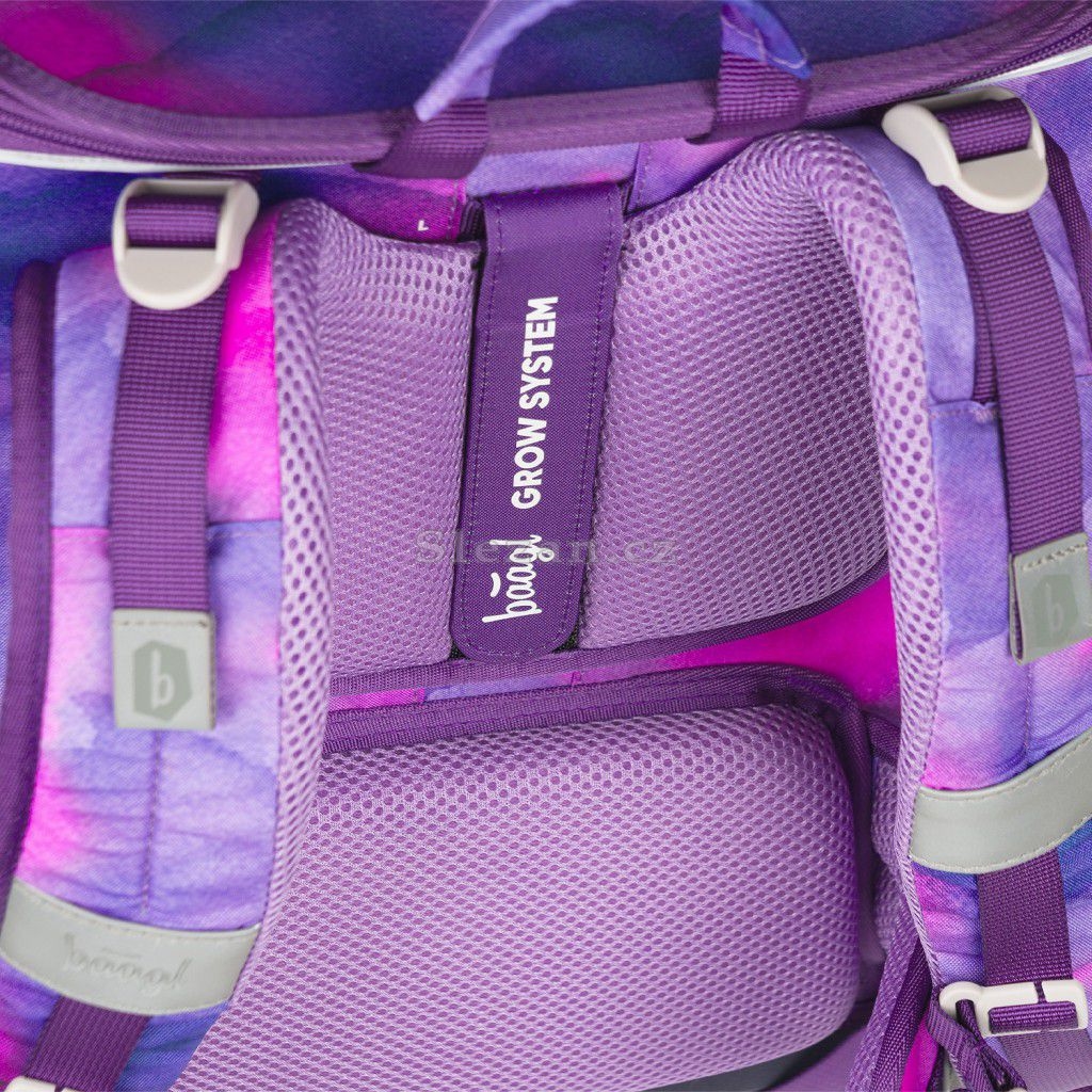 Posuvný zádový systém umožňuje nastavení aktovky na tři různé velikosti, díky čemuž taška roste spolu s dítětem.