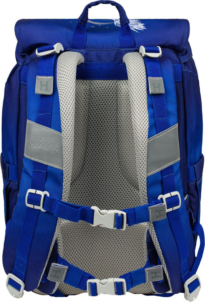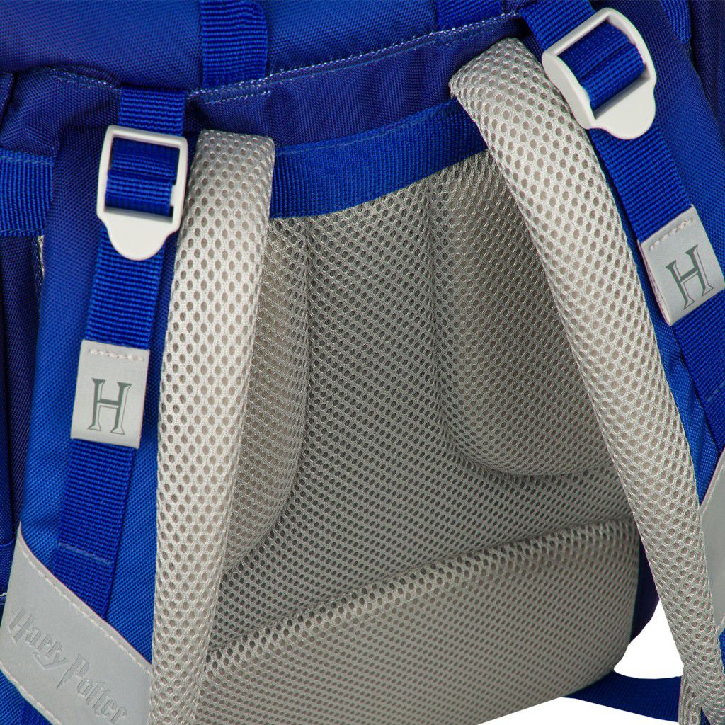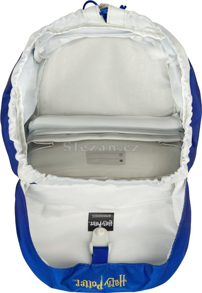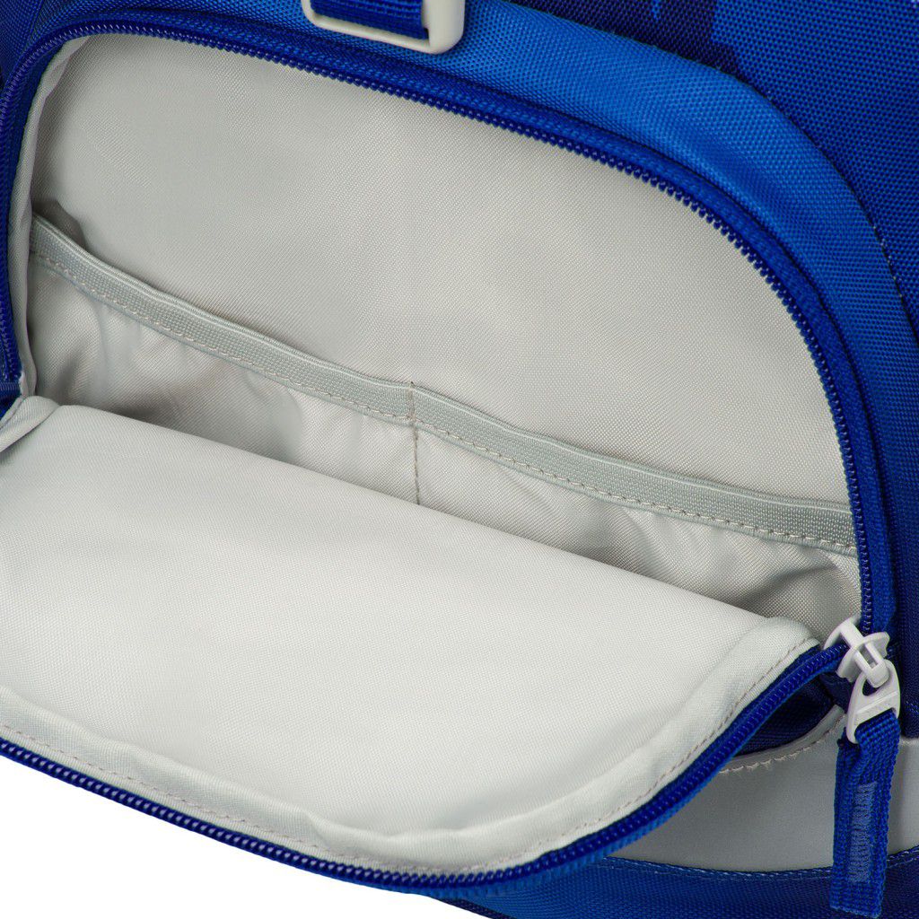 Jednokomorové vnitřní uspořádání s kapsou a gumičkou pro uchycení desek na zádové straně slouží ke snadné organizaci všech školních pomůcek.