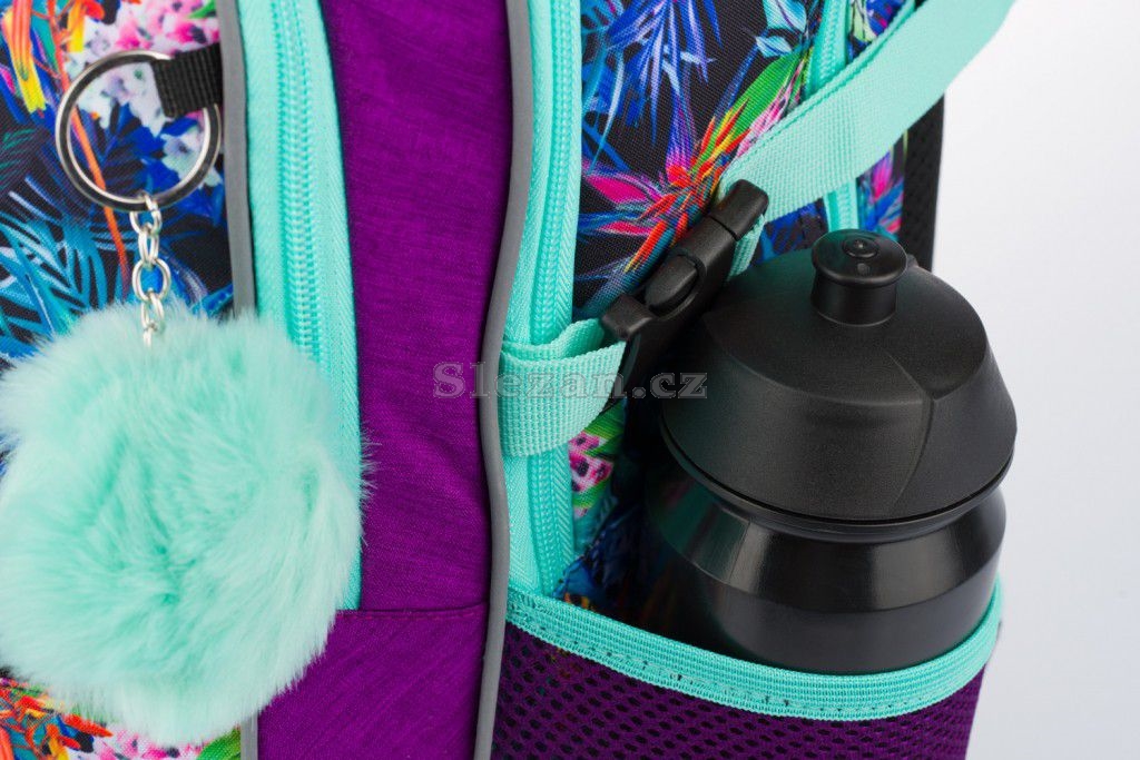 Boční kapsy z pevné síťoviny na láhev na pití či jiné drobnosti.