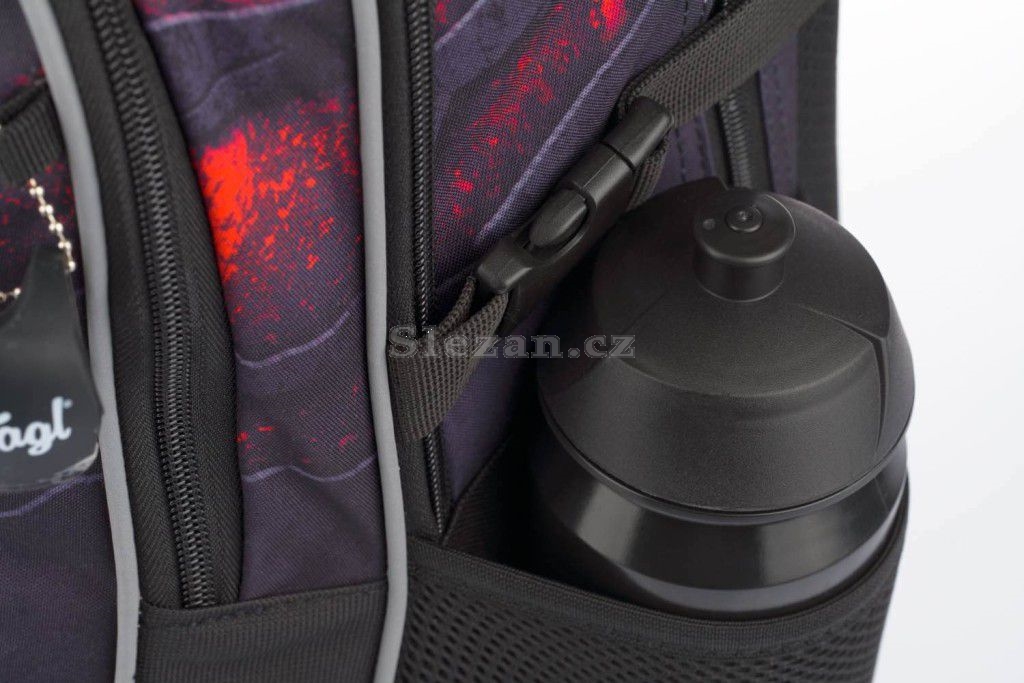 Boční kapsy z pevné síťoviny na láhví na pití či jiné drobnosti.
