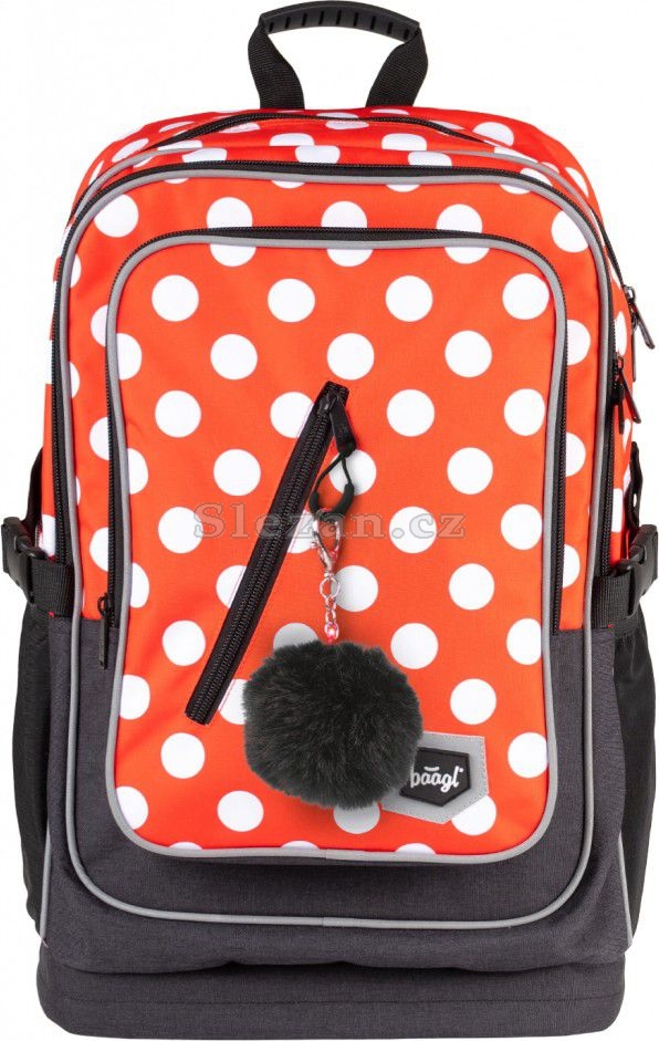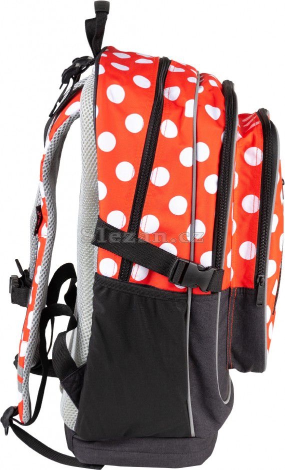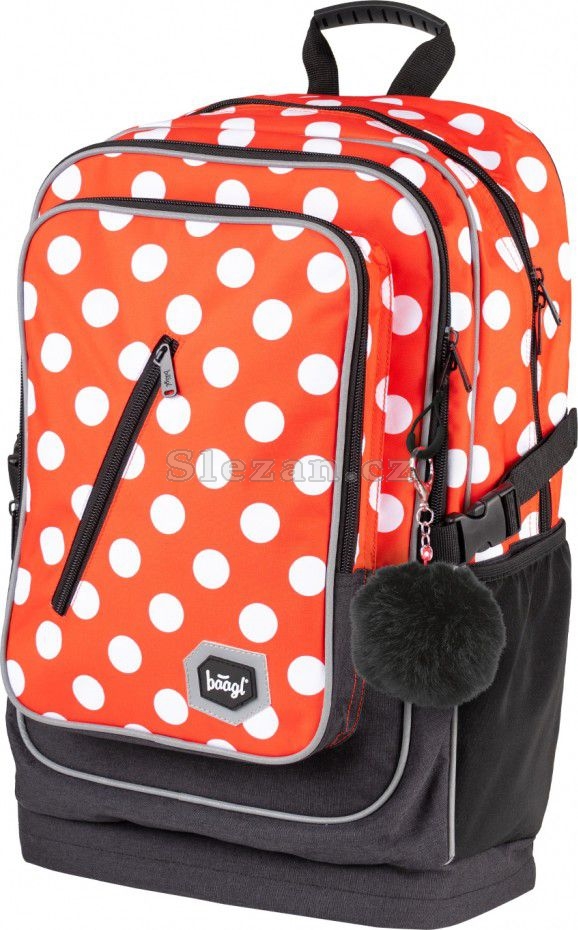 Tříkomorový školní batoh Cubic Puntíky, vhodný od 3. třídy 1. stupně ZŠ a také pro 2. stupeň ZŠ. Batoh byl úspěšně testován v ITC Zlín.