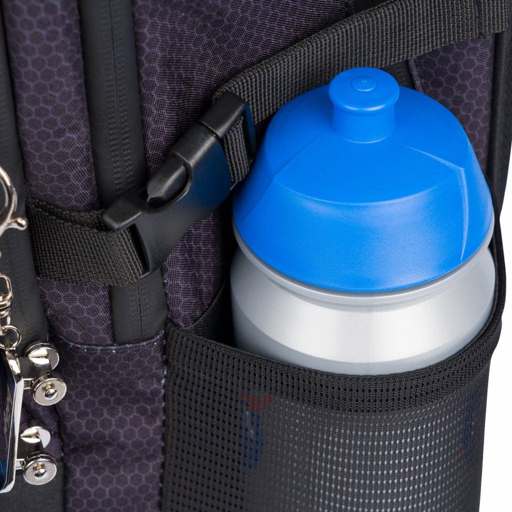 • Boční kapsy z pevné síťoviny, které jsou vhodné pro jednu z našich láhví na pití.