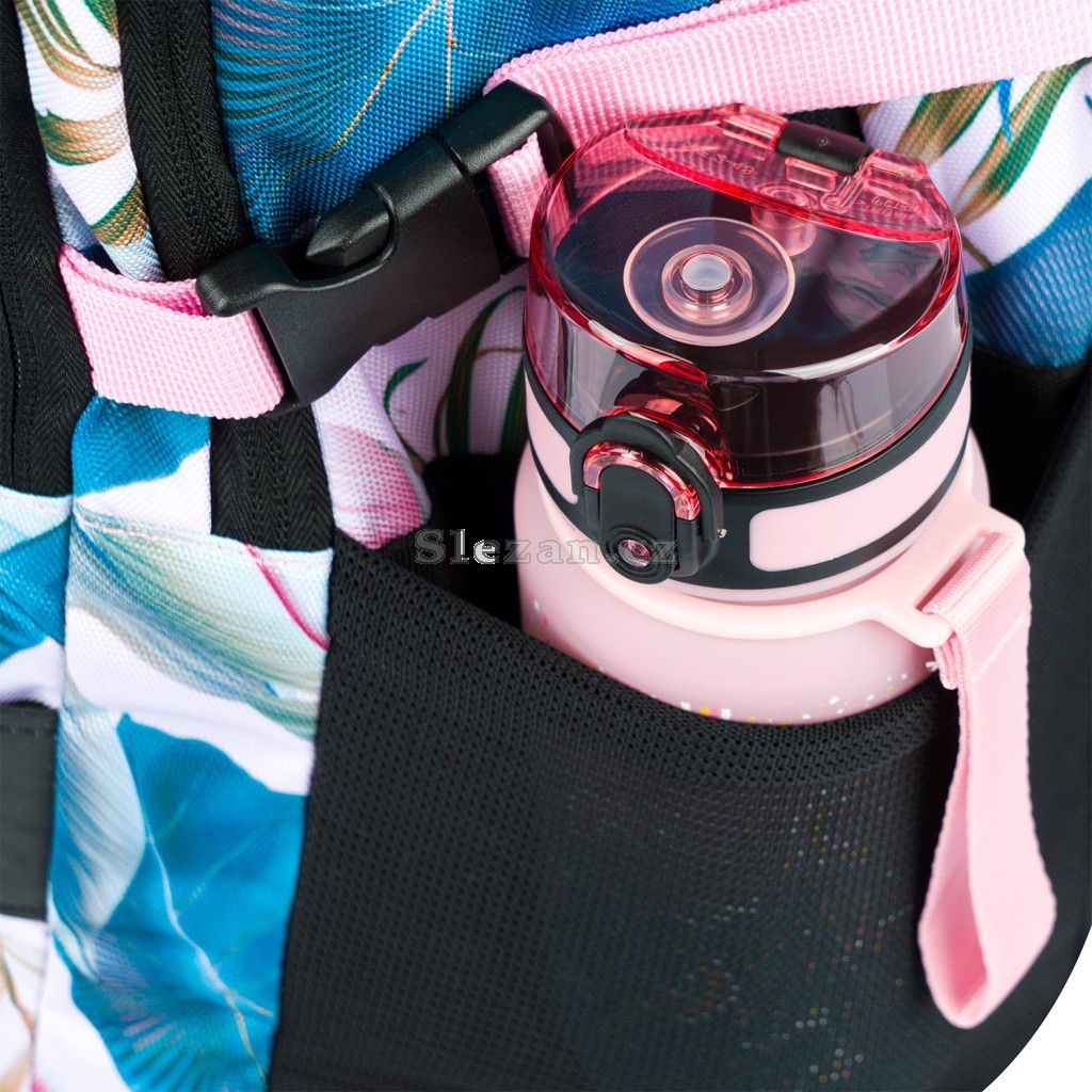 • Boční kapsy z pevné materiálu, které jsou vhodné pro jednu z našich lahví na pití.